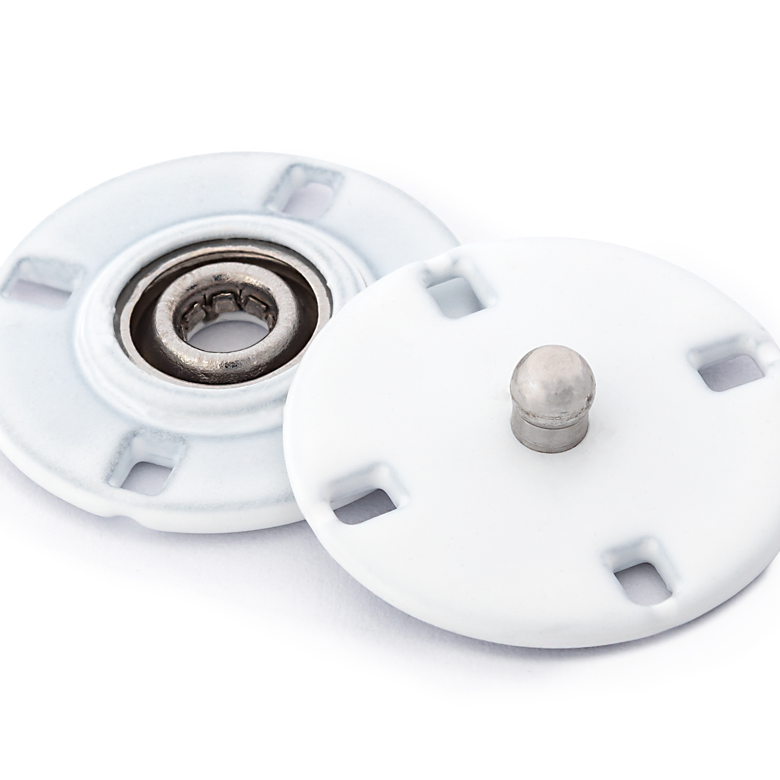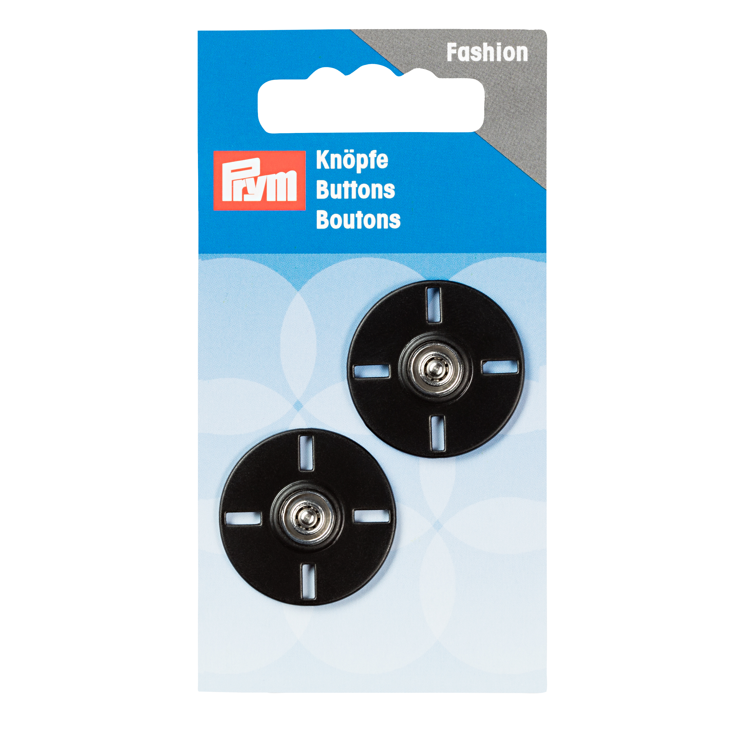 Diese runden Annähknöpfe sind auf Kleidungsstücken ein echter Blickfang. In Schwarz oder Weiß erhältlich setzen sie auch als Verschluss bei Taschen, Beuteln oder Etuis modische Akzente. Die Annähdruckknöpfe sind aus hochwertigem, rostfreiem Metall hergestellt und erlauben durch vier gleichmäßig verteilte Löcher ein einfaches Annähen. Ein schönes Dekoelement, das man nicht mehr missen möchte. Ganz nach Bedarf in verschiedenen Durchmessern verfügbar – jede Packung enthält zwei Annähdruckknöpfe.