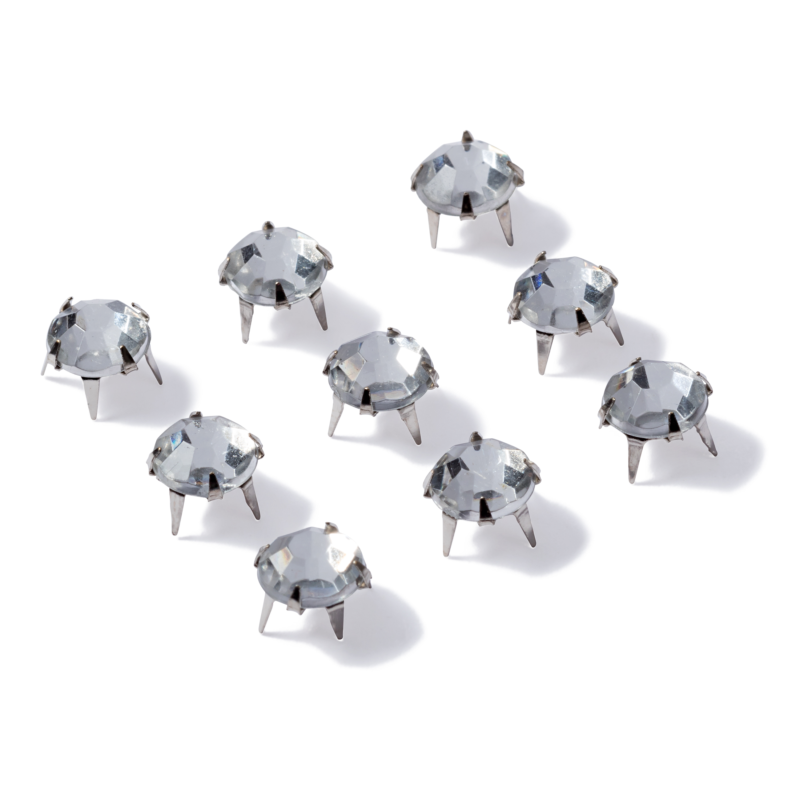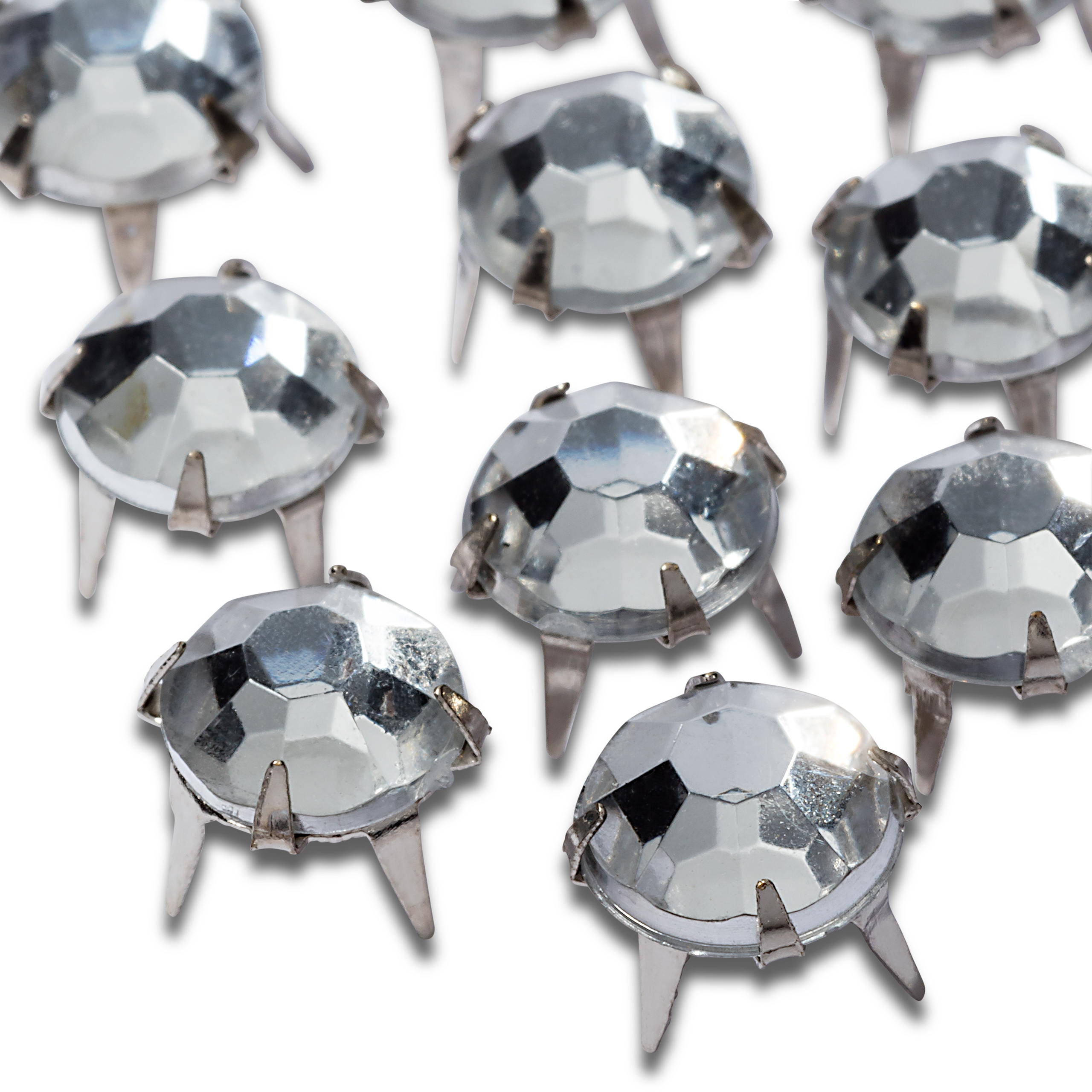 Die modischen Dekoraccessoires aus einem sechseckig geschliffenen Strassstein und einer dezenten Metallfassung sind perfekte Accessoires zum Verzieren und Aufpeppen von Kleidung, Taschen und vielem mehr. Die silberfarbigen Nieten verfügen über vier nadelförmige Füße, die leicht durch robusten Stoff oder Leder gesteckt werden können. Auf der Rückseite werden die spitzen Füße nach innen umgebogen und bieten damit festen Halt. Im Sortiment der Creativ Dekor Ziernieten sind die Strass-Stecker in zwei Größen zu 12 Stück bzw. 20 Stück pro Karte erhältlich. Sie sind bis 30 Grad waschbeständig.