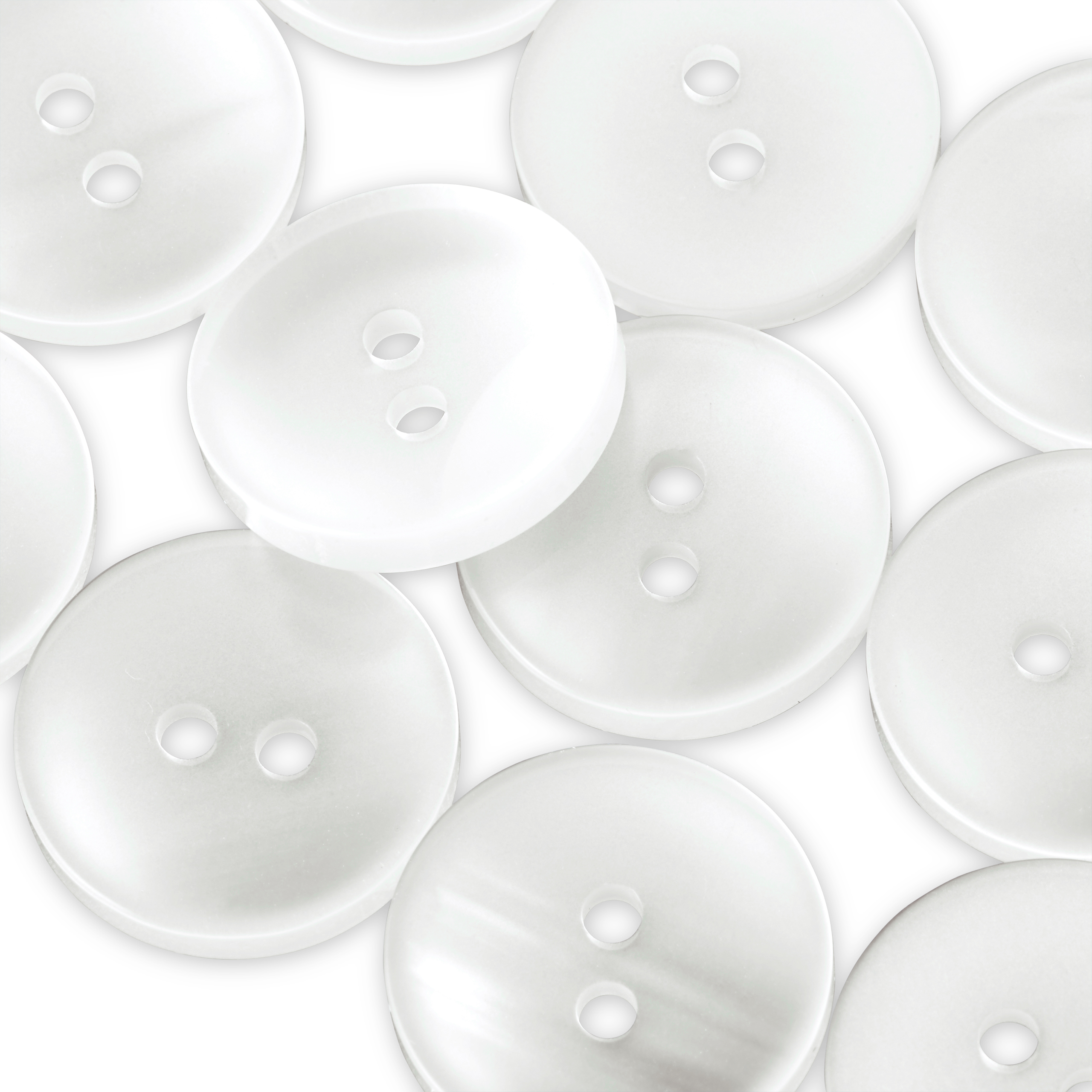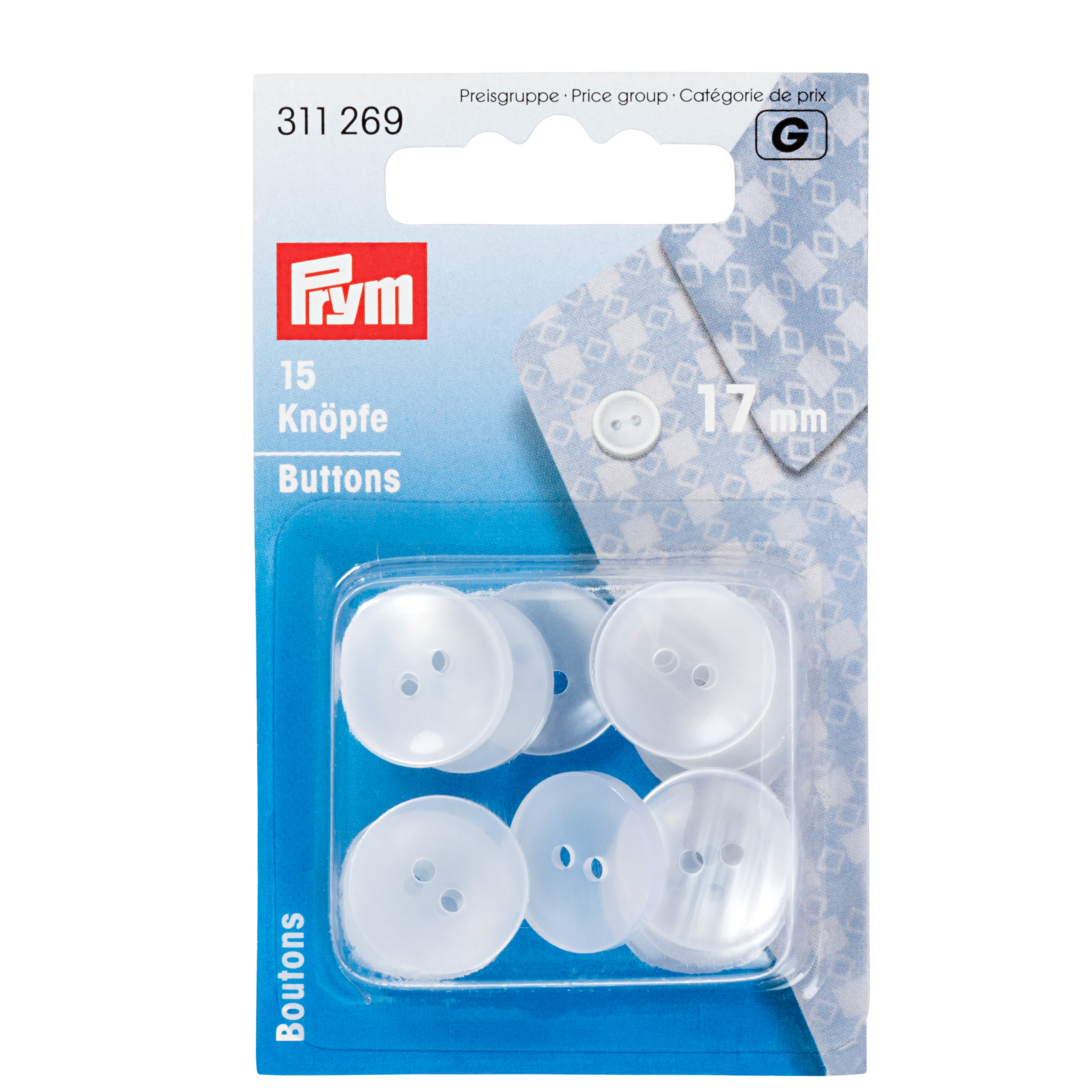 Für Kittel im Beruf oder Haushalt und für Schlafanzüge eignen sich bestens die perlmuttfarbenen Kittelknöpfe. Gerade bei Wäsche, die häufig bei 95 Grad gewaschen wird, sind die strapazierfähigen Knöpfe aus Polyester die beste Wahl. Die schlicht gestalteten semi-transparenten Knöpfe passen perfekt zu farbigen und weißen Textilien. Prym bietet sie mit zwei Annählöchern in verschiedenen Größen zwischen 13 mm und