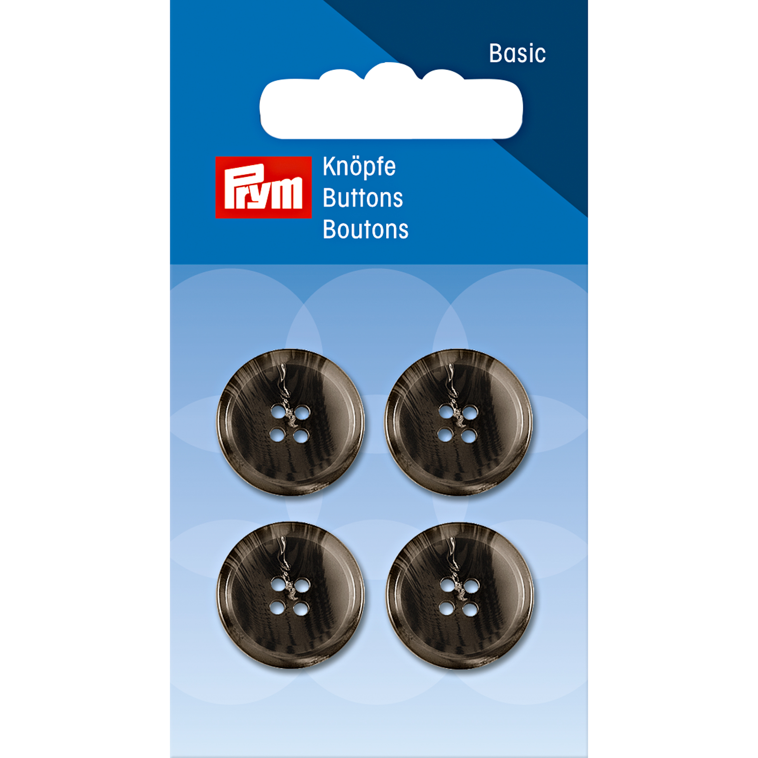 Für Anzüge, Hosen, Hemden und Blusen bietet Prym die Knöpfe „Anzug und Hose“ vierfach gelocht in Schwarz, dezent changierenden oder melierten Farbtönen an. Auf diese Art passen sie farblich perfekt zu jedem Kleidungsstück, sei es als Ersatzknöpfe für einen hochwertigen Anzug oder bei der Verwendung für Eigenkreationen. Im Sortiment von Prym gibt es diese Knöpfe aus wasch- und bügelfestem Polyester in Größen zwischen 15 mm und 23 mm. Je nach Knopfgröße sind in einer Packung 2 bis 4 Knöpfe enthalten.
