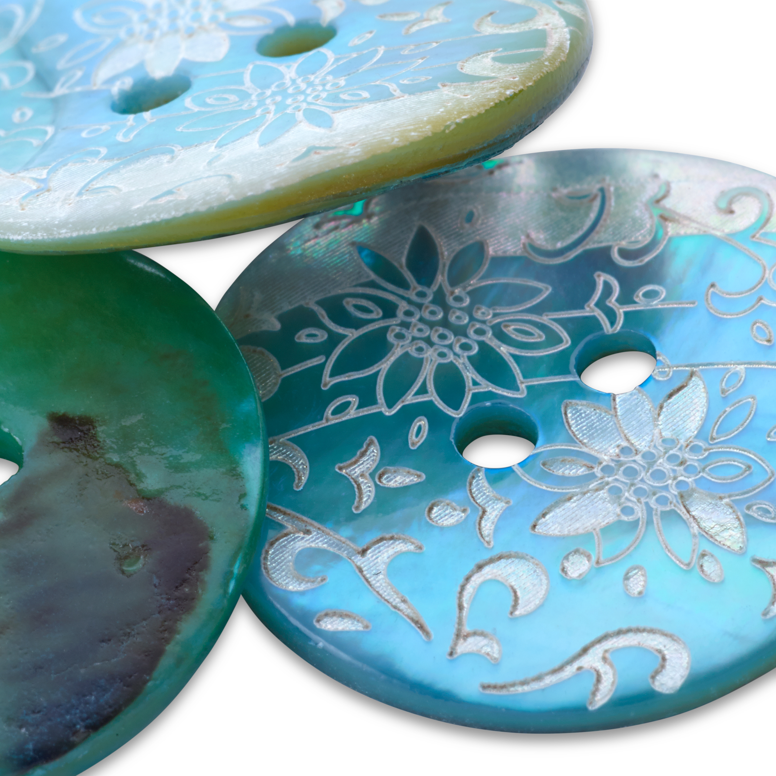 Produktinformationen "Knöpfe "Blume Perlmutt" 2-Loch, in verschiedenen Farben"