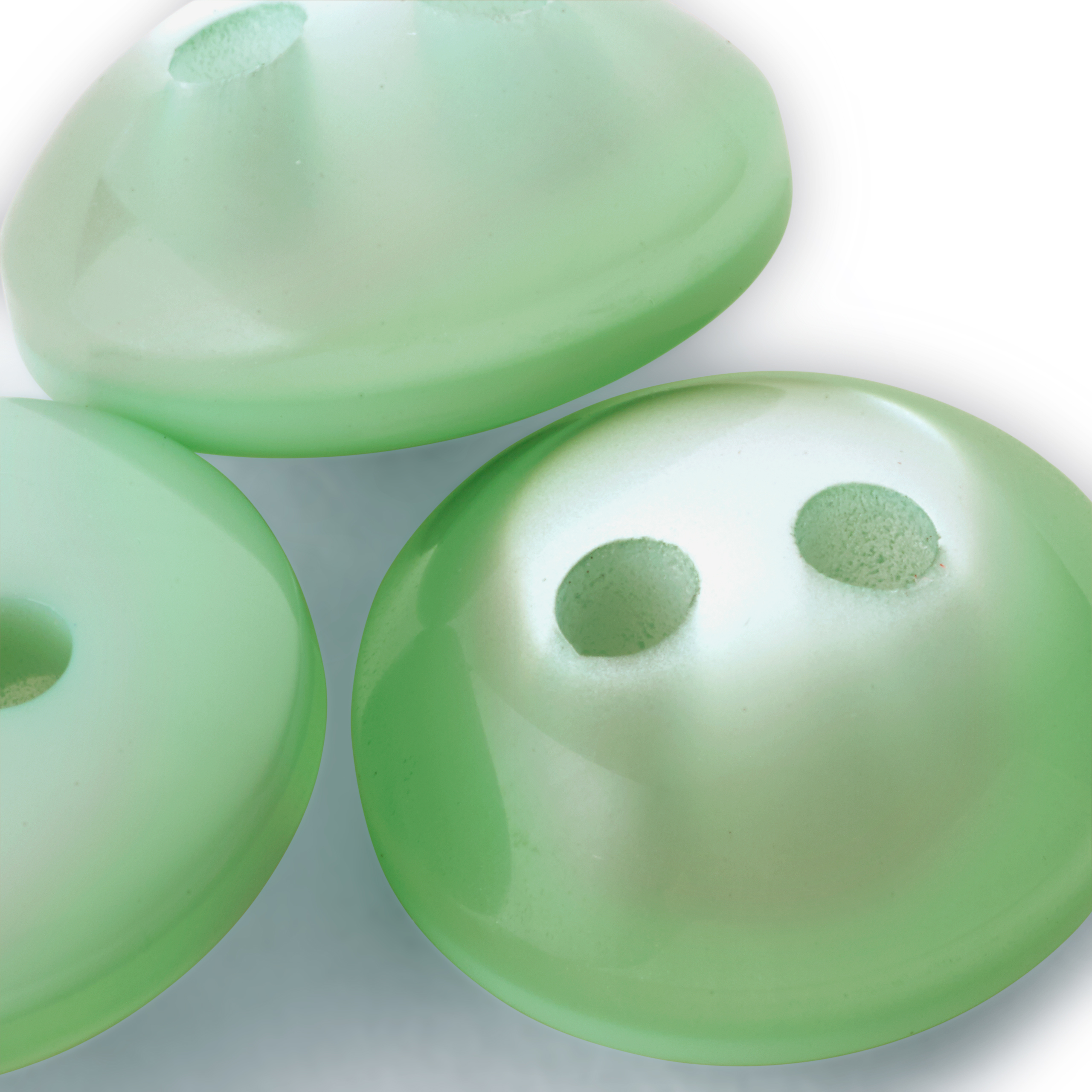 Die Knöpfe „Halbkugel“ aus Polyester haben einen schönen Glanz und passen perfekt zu Wollkleidung, wie zum Beispiel Strickjacken, lassen sich aber auch universell für viele Stoffe verwenden. Prym bietet sie wahlweise mit zweifacher Lochung oder mit stabiler Öse in Größen zwischen 10 mm und 18 mm an. Die Farbpalette umfasst Schwarz, Hellgrau, Weiß, Beige sowie Lachs, Mint, Türkis und Dunkelblau. Dadurch eignen sich die Knöpfe „Halbkugel“ perfekt als Ersatzknöpfe sowie zur Gestaltung von Eigenkreationen. Je nach Knopfgröße sind 4 bis 6 Stück auf einer SB-Karte angebracht. Sie sind pflegeleicht und bei 30 Grad waschbar.