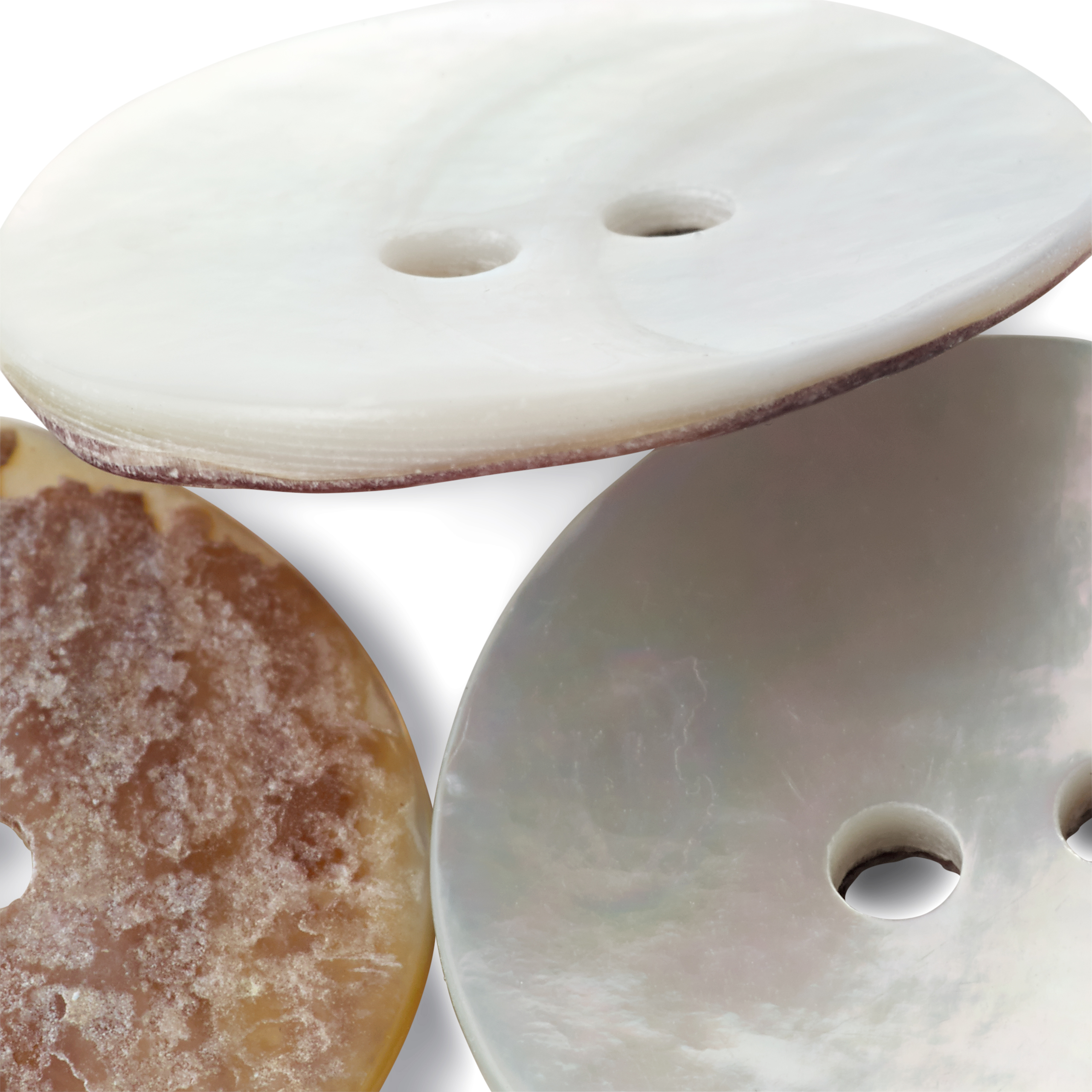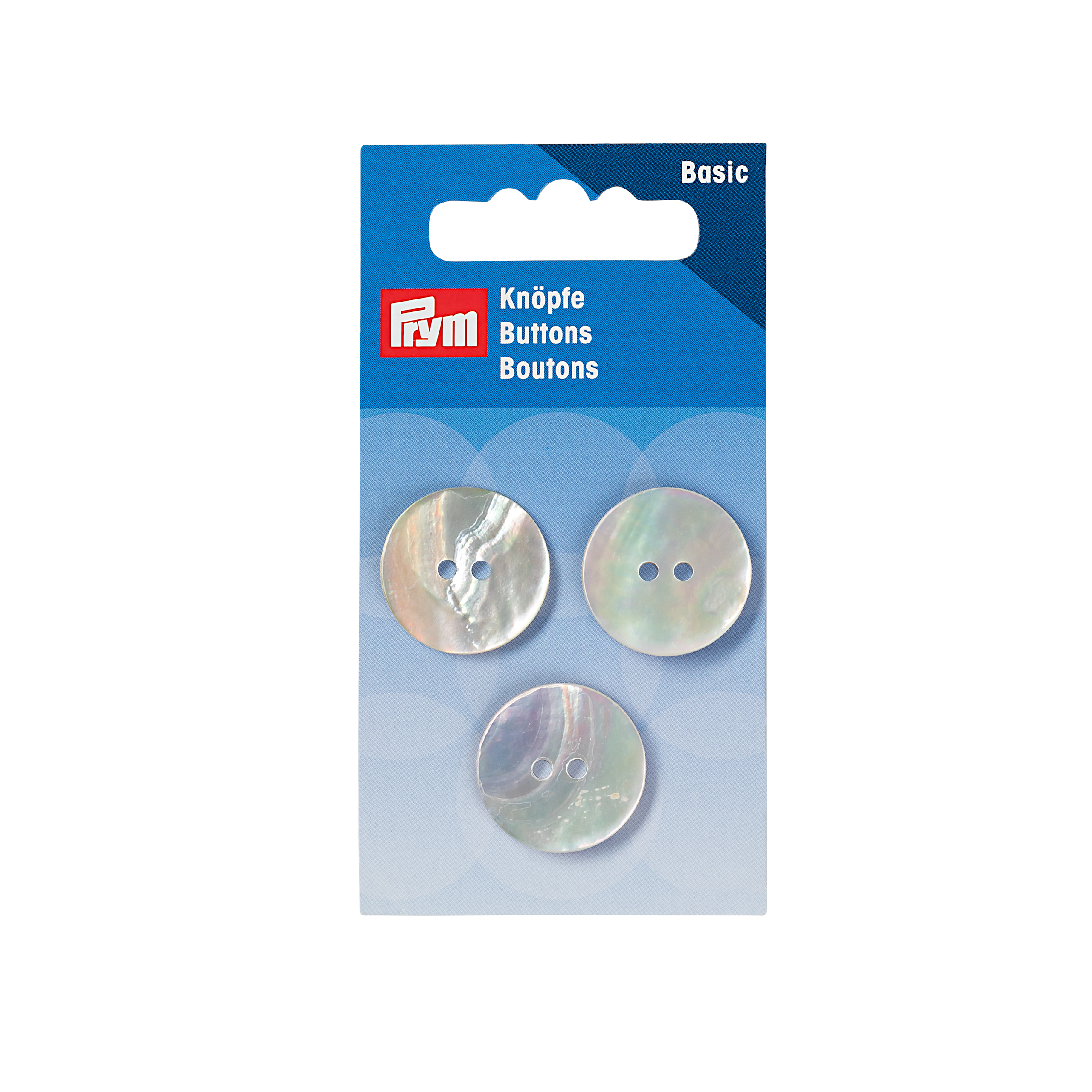 Bei den Knöpfen „Perlmutt“ handelt es sich um echte Unikate aus dem Naturmaterial Perlmutt. Die runden Knöpfe in unterschiedlichen Größen passen besonders gut zu Blusen, Blazern und Jacken aus gröberen Materialien wie Filz und Leinen, aber auch zu leichter und feinerer Damenoberbekleidung. Durch zwei Annählöcher eignen sich die Knöpfe für eine dezent sichtbare Befestigung. Die schillernden Perlmuttknöpfe in den Farben Hellblau, Rosa und Natur sind bis 30 Grad waschbar und reinigungsbeständig. Je nach Knopfgröße sind zwei bis fünf Knöpfe auf der SB-Karte angebracht.