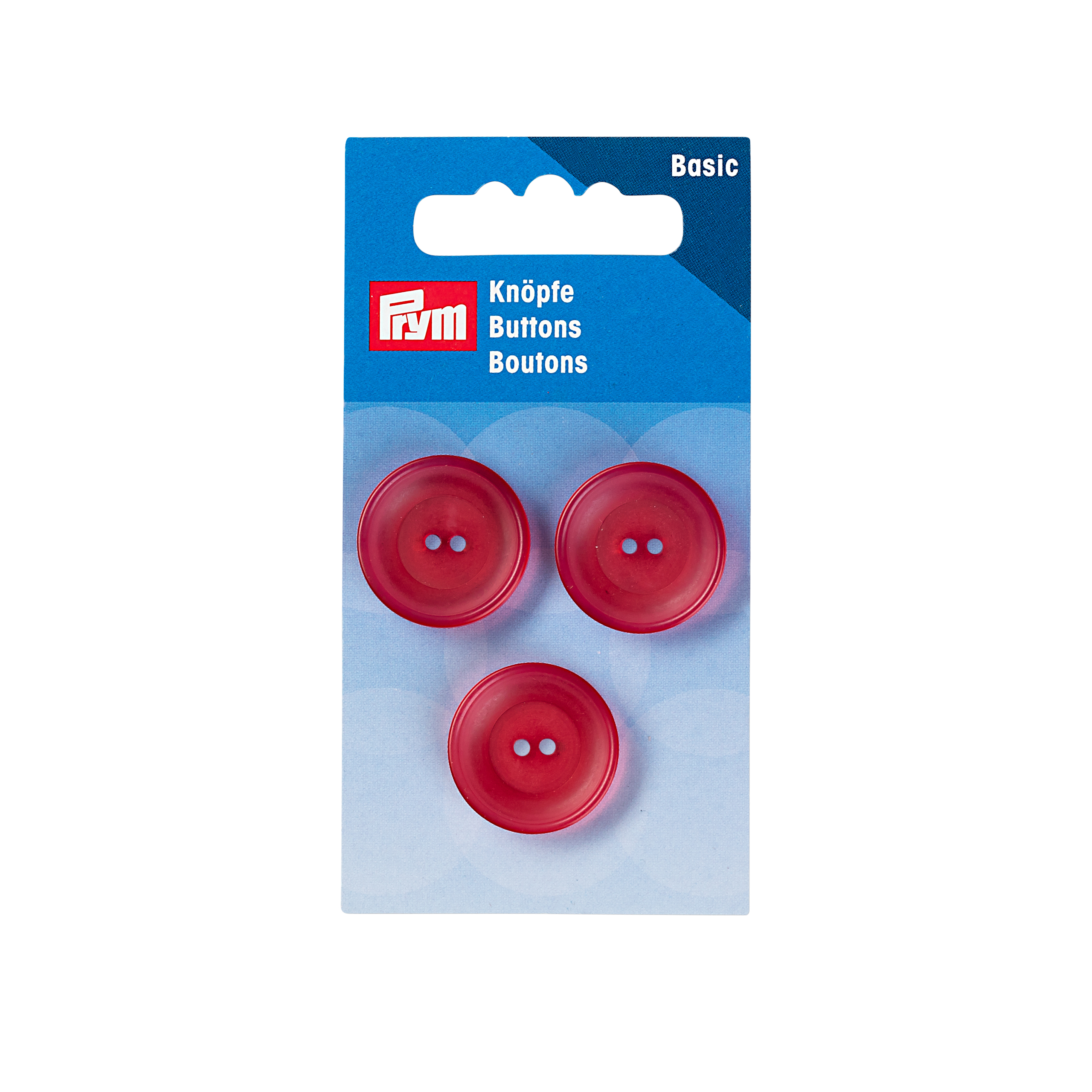 Die Knöpfe „Standard“ aus Polyester haben einen Durchmesser von 20 mm und einen mittelbreiten Rand. In dieser Ausführung führt Prym sie in den vier kräftigen Farben Blau, Grün, Orange und Rot mit einer zweifachen Lochung zum Annähen. Überall, wo knallige Farben verwendet werden oder gefragt sind, können die Knöpfe „Standard“ zum Einsatz kommen, sei es als Farbklecks auf weißen Stoffen oder als Kontrast auf farbigem Material. Pro Farbe sind jeweils drei bunte Knöpfe auf einer SB-Karte angebracht. Sie sind pflegeleicht und bei 30 Grad waschbar.