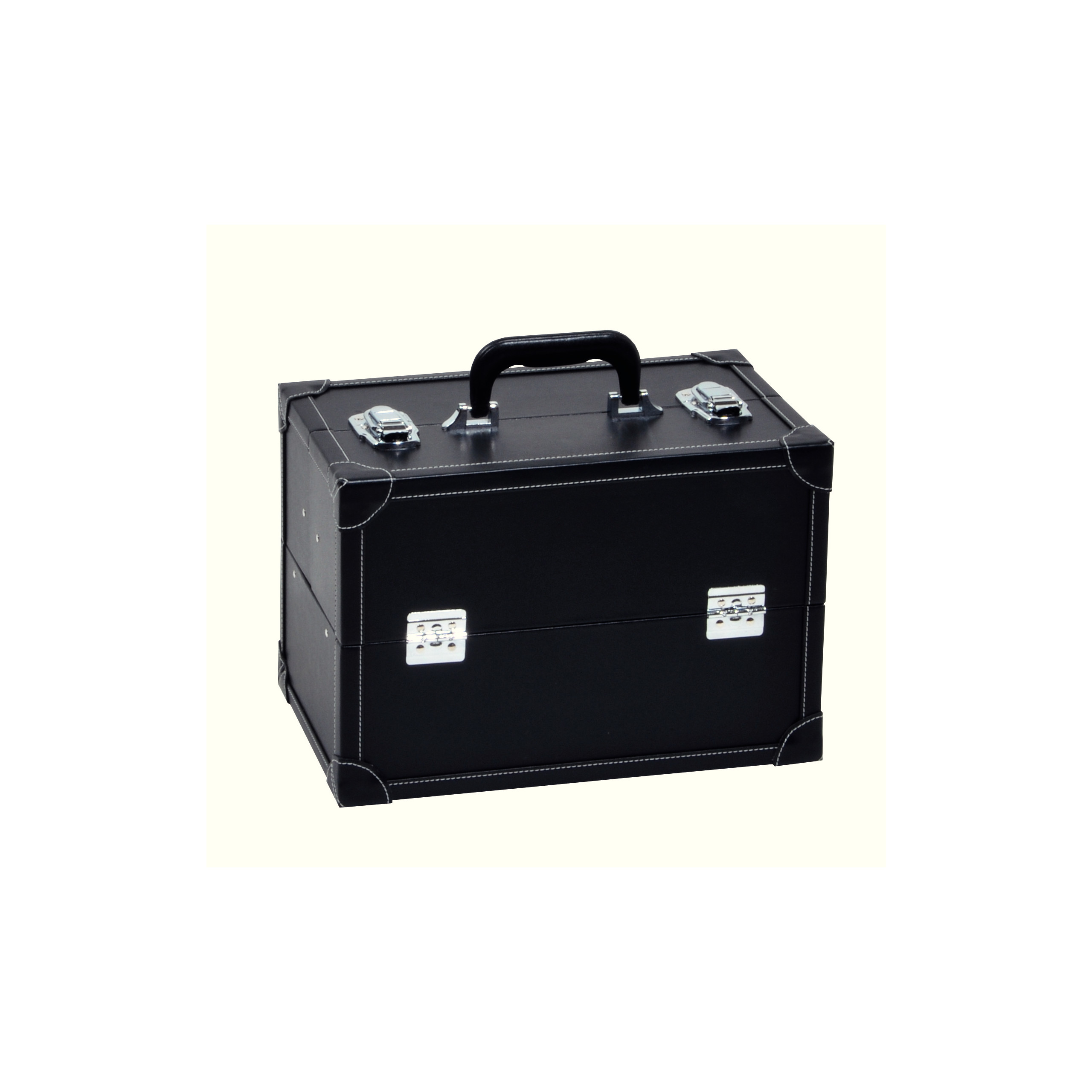 Praktisch bis ins letzte Detail: Der handliche Nähkoffer bietet durch sein ausgeklügeltes Öffnungssystem Raum für den kompletten Nähbedarf. So lassen sich drei große Aufbewahrungsfächer terrassenförmig durch ein Alu-Gestänge zur Seite ausklappen – jedes Nähutensil ist hier sofort zur Hand. Von der Schneiderschere über das Maßband bis hin zu Garnrollen erhält hier alles Platz. Der Nähkoffer begeistert durch seine rote Lederoptik und zeigt mit seinem stabilen Griff, den Piloten-Kofferverschlüssen und der Schutzverkleidung für die Ecken einen hochwertigen Charakter. Durch seine Größe ist der Nähkoffer neben der reinen Aufbewahrung auch wie geschaffen für Kurzreisen oder Näh-Workshops.
